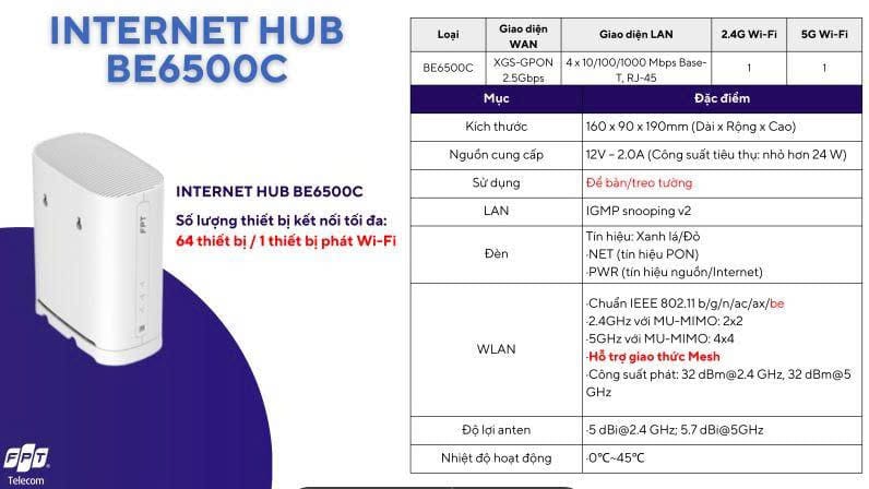 Chi tiết cấu hình thiết bị Internet Hub BE6500C