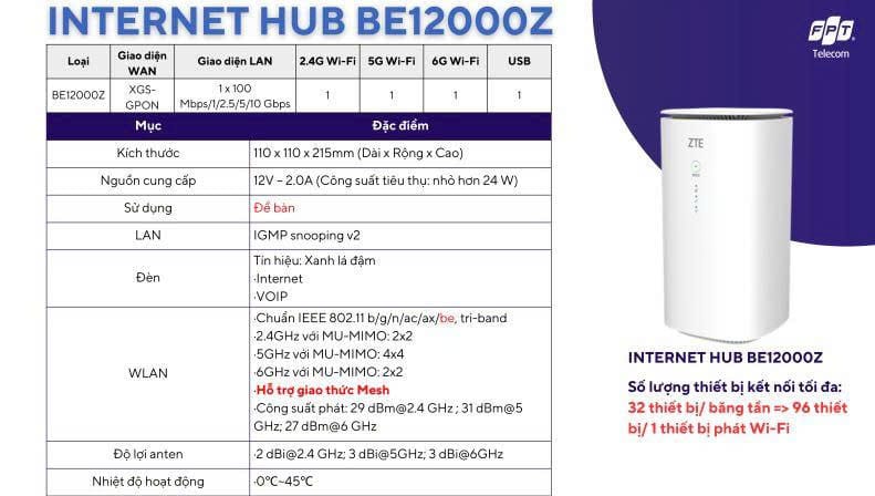 Chi tiết cấu hình thiết bị Internet Hub BE12000Z