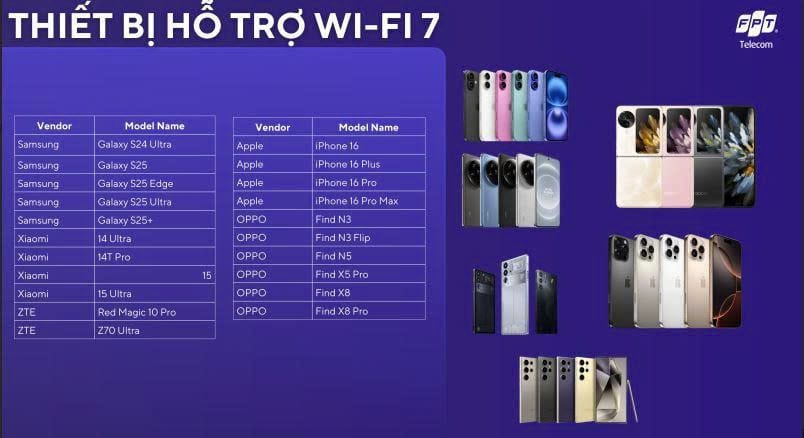 Các dòng thiết bị hỗ trợ kết nối gói cước WiFi 7