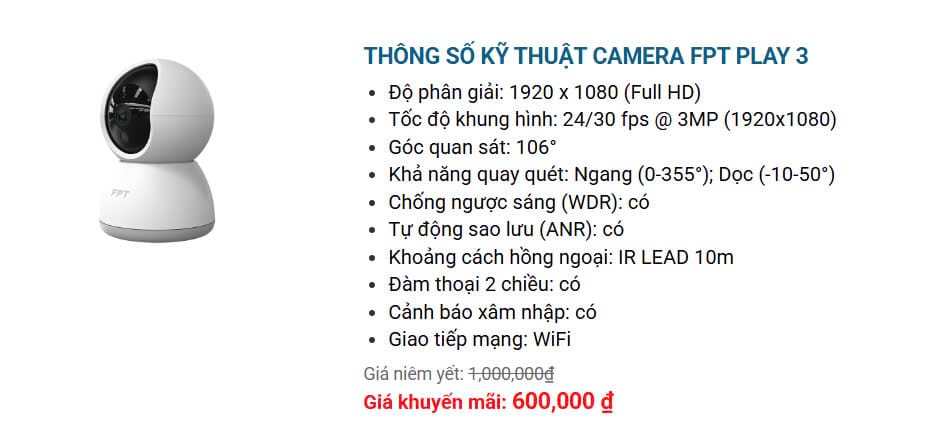 Bảng giá Cloud Camera FPT