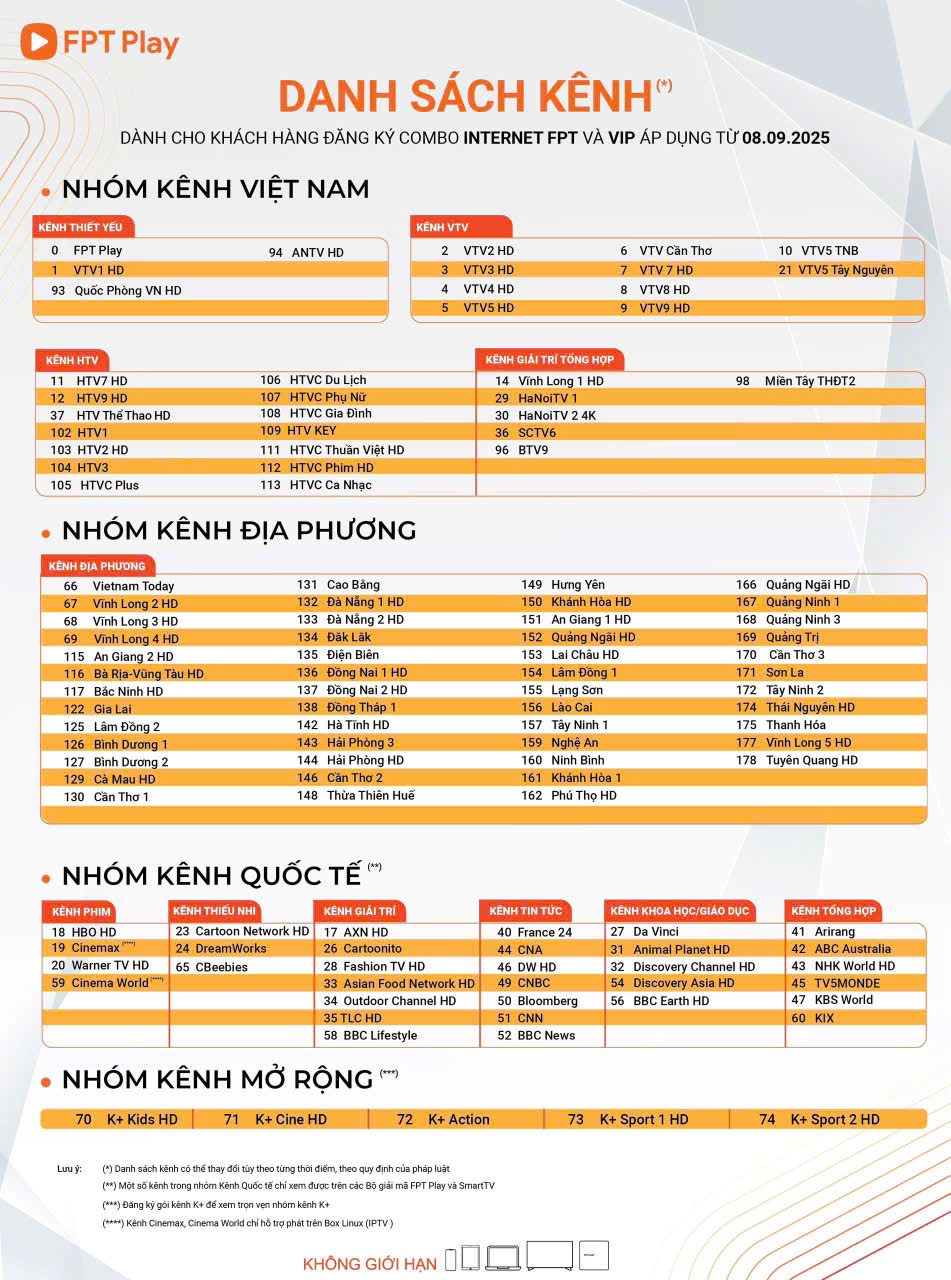 - Gần 200 kênh truyền hình (không bao gồm các kênh K+)